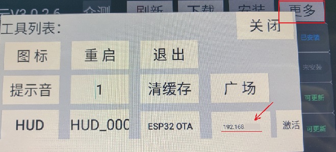 确保ESP32和车机都连入同一个网络,蘑菇云“刷新”-“更多”,会显示同样的ip地址: